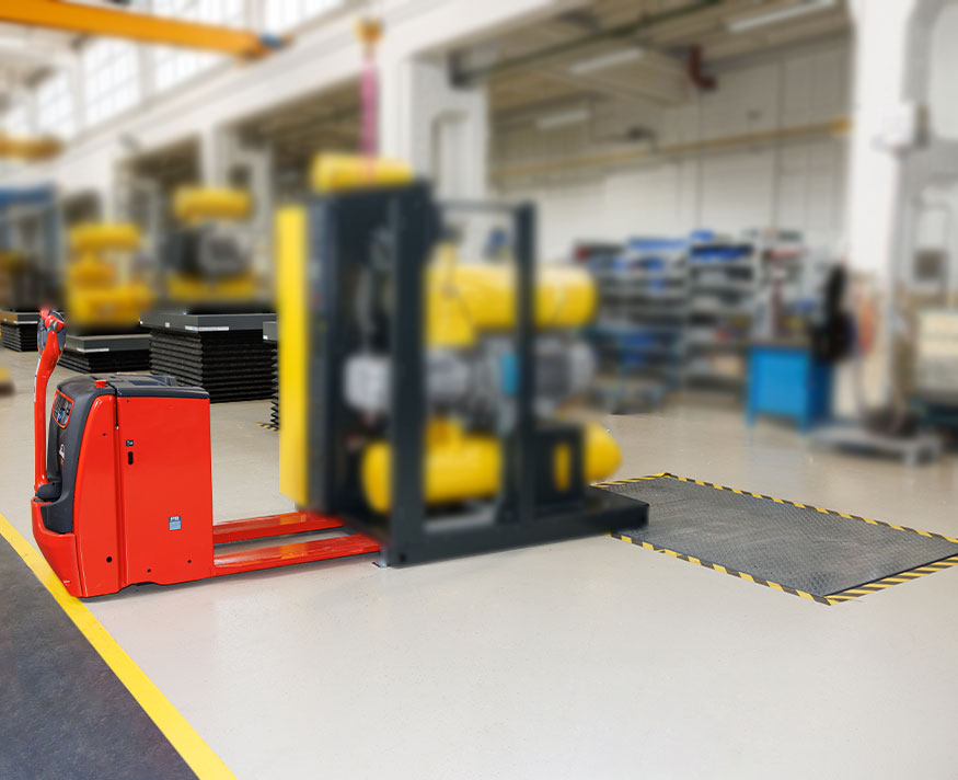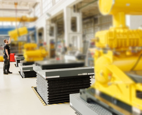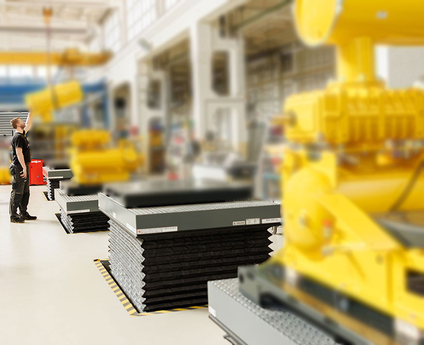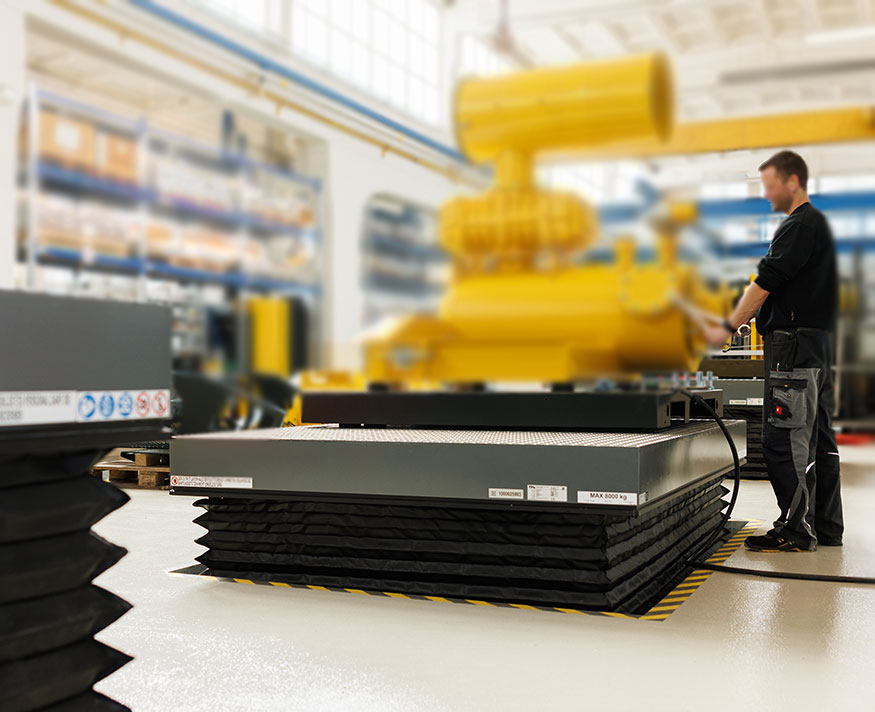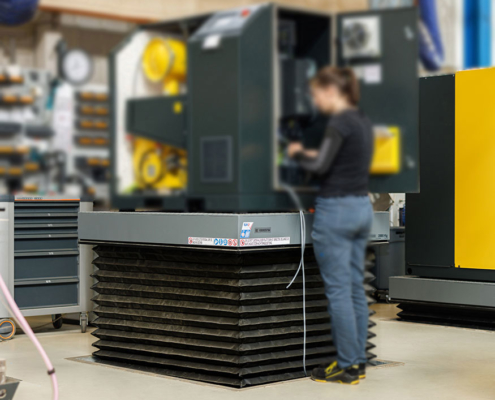 Einfach-Scherenhubtisch - Zu beförderndes Gut: Schraubengebläse auf Stahlpaletten