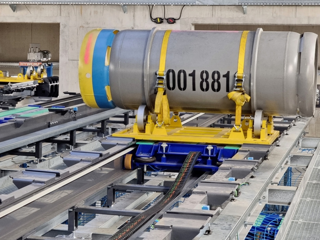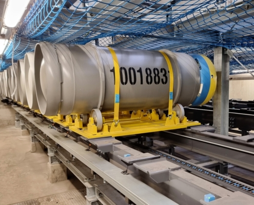 Drehbühne - Zu beförderndes Gut: Fässer auf Fassträgergestelle