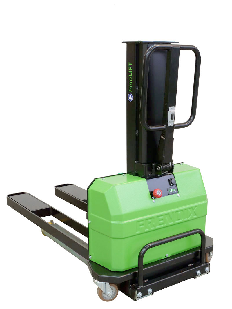 Technischer Hinweis: Die Hochhubwagen der Marke InnoLIFT sind zum manuellen Verfahren und elektrischem Heben, sowie zur Aufnahme von offenen Paletten bzw. Containern konzipiert. Zum Fahren soll der Mitnahmestapler auf hartem und ebenem Boden bewegt werden. Bei Verwendung im Freien sollte es trocken und der InnoLIFT nicht mit Wasser in Berührung (Schutzklasse IP32) kommen. Darüber hinaus sollten die Lifte trocken gelagert werden. Zum Transport wird der Mitnahmestapler auf den Gabeln abgesetzt und zusätzlich mit Spanngurten gesichert. Die an allen Gabelhochhubwagen angebrachte CE-Kennzeichnung dokumentiert die Einhaltung der maßgeblichen Bestimmungen der EU-Maschinenrichtlinie.