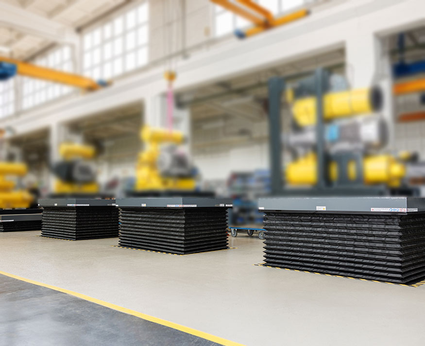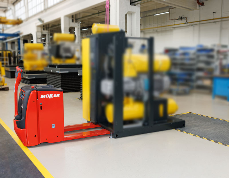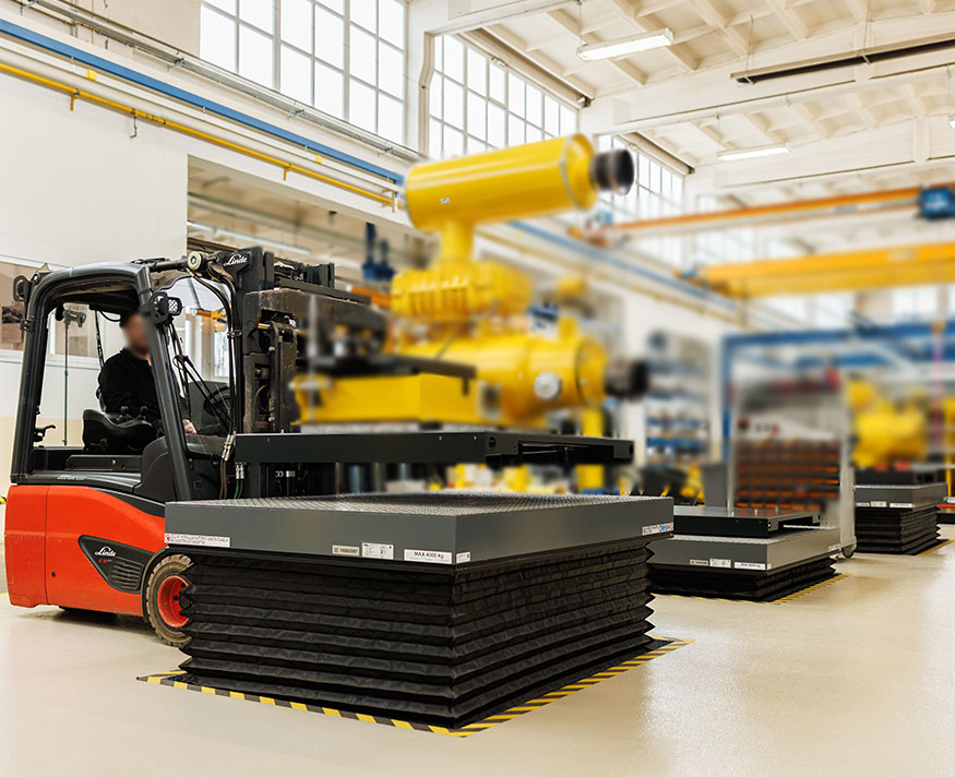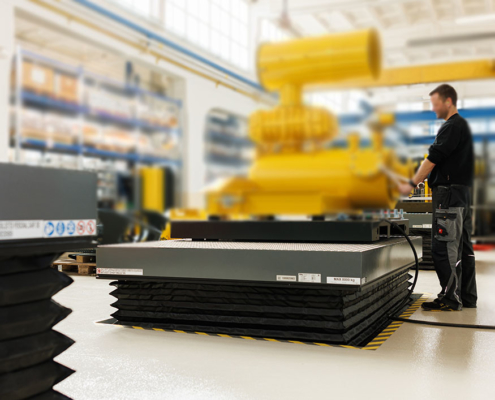 Einfach-Scherenhubtisch - Zu beförderndes Gut: Schraubengebläse auf Stahlpaletten