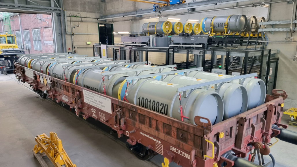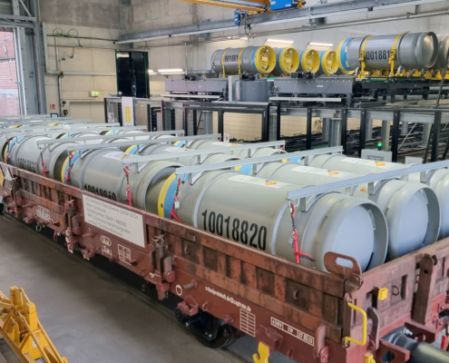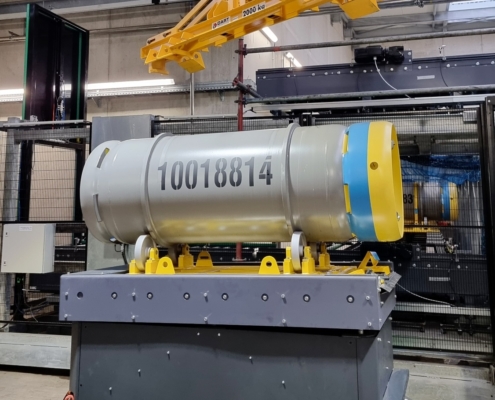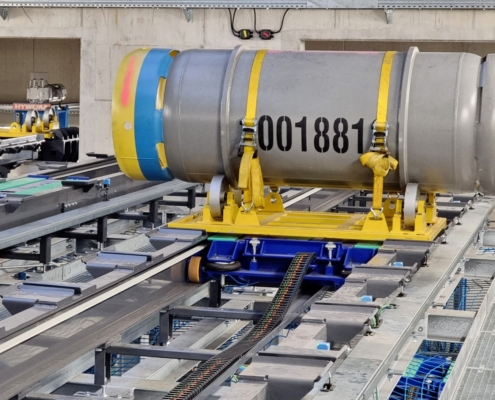Drehbühne - Zu beförderndes Gut: Fässer auf Fassträgergestelle