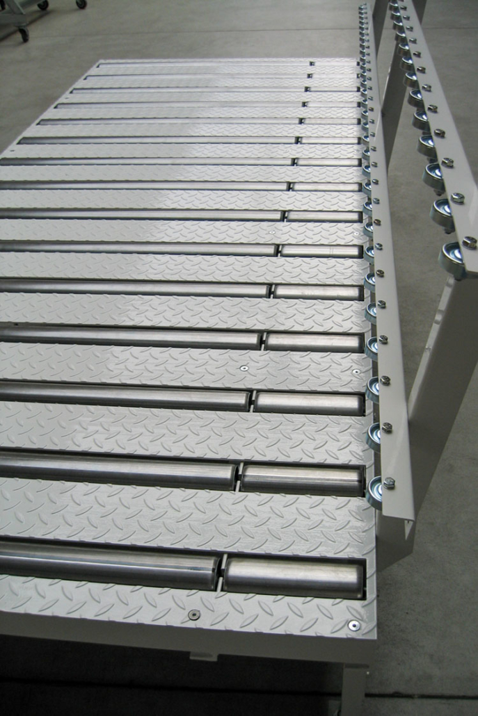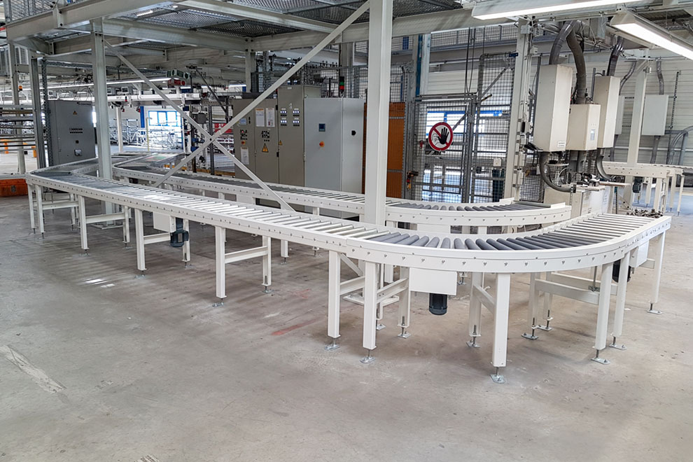 - Variantenreiche Ergänzungen wie z.B. Spurkränze, Beschichtung der Tragrollen für empfindliches Fördergut, Trittbleche, Seitenführungen und vieles mehr